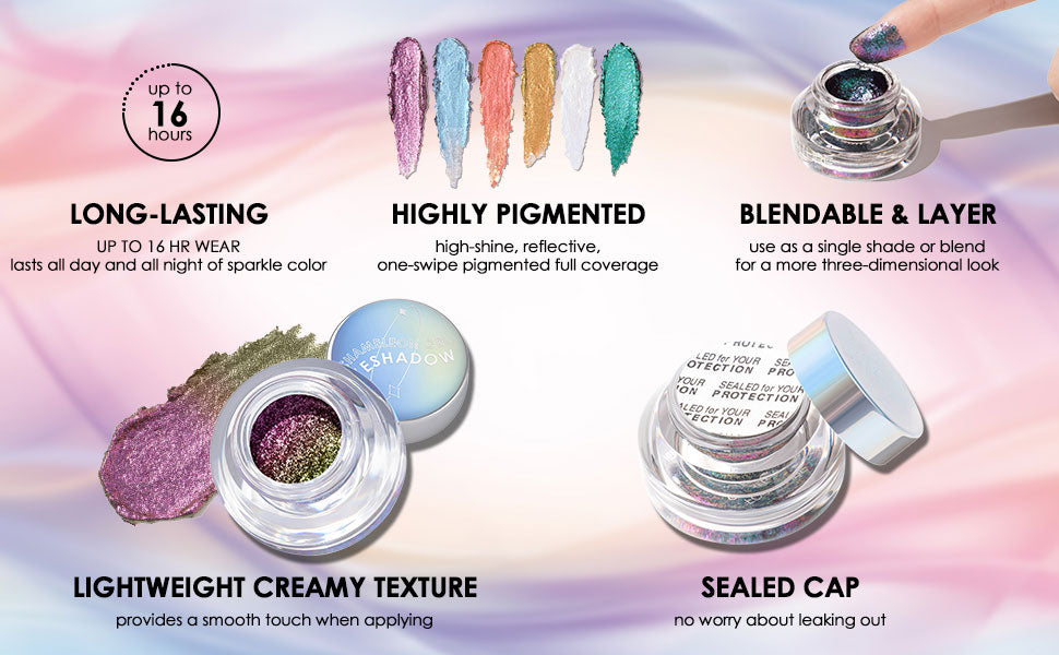 -Con súper saturado pigmentos, el color puede cambiar de verde esmeralda a púrpura. Las grandes partículas de purpurina te darán un acabado vibrante.